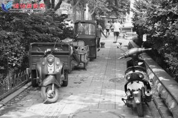 8月12日,记者跟随创城检查小组检查城区部分市场,发现存在环境脏乱差,搭建棚厦、占道经营、经营者无健康证等问题,需要加大力度继续整治。 图①:城区南门市场门口处,经营者占道摆摊,搭建棚厦。 图②:在城区南门市场门口道路上,车辆乱停乱放。 本报记者