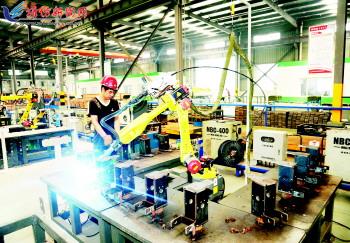 8月27日,潍坊大洋自动泊车有限公司职工在利用先进的机器人进行部件焊接。潍坊大洋自动泊车立体车库生产基地位于潍城区乐埠山节能环保产业园,主要从事机械式立体停车设备的研发设计和制造安装。 近年来,企业高度重视创新能力建设,目前企业拥有23项发明专利和42项实用新型专利,获得欧洲CE和美国TUV国际认证。液压自动升降和电脑全自动控制系统、电脑故障自诊断系统代表了业内最高水平。 记者曹亮华摄