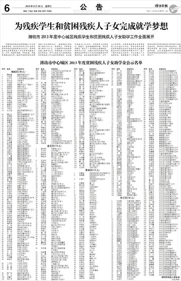 潍坊市中心城区2013年度贫困残疾人子女助学金公示名单 |