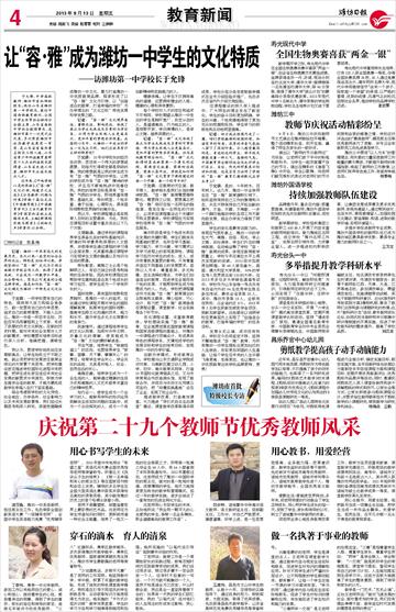 王成伟,昌邑市文山中学生物教师,从教十六年,在领导的正确指导下,通过自身的努力、积极探索、大胆实践,取得了优异成绩。先后获得昌邑市教学能手、山东省奥林匹克竞赛优秀辅导员等荣誉称号。 兴趣是最好的老师,学生是课堂的主人。王老师在课堂教学方面,通过教学内容与现实生活实际相联系,促进学生对知识的理解和应用。针对不同学生进行严谨的分层设计,让不同程度的学生都动起来,都有事干,让每一个学生在每一节课的学习中都有收获。“学为所用”,通过教学内容与现实生活实际相联系,促进了学生对知识的理解和应用,有效地促进了学生知识和能力的发展。 “三尊两学一交流”是王老师的治班法宝。“三尊”是指尊重学生人格、尊重学生家长、尊重学生劳动;“两学”是学会做人、学会做事;“一交流”就是抓好学生的常规落实,课堂学习落实,督促学生将自己的学习计划、人生规划落实到生活学习中。这些方法极大地提高了学生的整体素质,得到了领导和家长的认可。 教学是一门艺术,“艺无止境”。正如王老师所说:“面对飞速发展的社会,面对着求知的学生,我们没有理由停滞不前,教学适应时代发展的需要是老师的责任”。