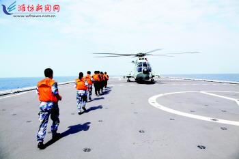 9月18日,在井冈山舰上,特战分队和医疗分队登上直升飞机。当地时间9月18日,中国海军第15批护航编队派出特战队员到中国籍被护商船“振华26”号上进行随船护卫,并利用输送特战队员时机,组织医疗分队到商船上为船员进行身体检查。 (新华社发)