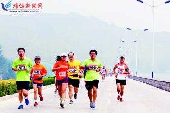 9月21日,参赛选手在比赛中。当日,第四届中国(峡山)国际马拉松邀请赛在峡山区开赛。此次比赛全程42.195公里,来自中国、韩国、美国等21个国家和地区的561名运动员参加比赛。参与竞技的运动员们在峡山水库沿线的道路上奔跑,与沿途的鲜花、绿树一起构成了一道美丽的风景。 记者孙树宝摄