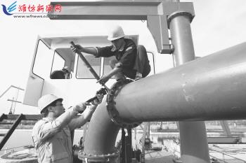 11月8日,滨海区一家企业自主研发的2500立方米全液压绞吸式挖泥船成功进行试下水试验。截至目前,该企业已制造了100多台全液压绞吸式挖泥船,出口伊朗、哥伦比亚等30多个国家。图为工作人员在对挖泥船进行维护。 记者孙树宝 通讯员王志顺摄