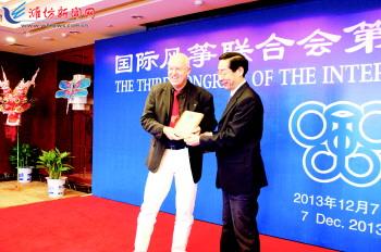 | 新当选国际风联主席冯建中向新任国际风联副秘书长以上人员颁发任职证书。魏剑刚摄 |