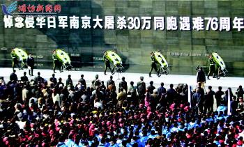 据新华社南京12月13日电 12月13日,南京冬日上空又一次响起凄厉的警报声。86岁的梅寿兰老人忍着手臂骨折的疼痛,在女儿的搀扶下又一次来到了位于南京市江东门的侵华日军南京大屠杀遇难同胞纪念馆。 “今天是个特殊的日子。每年的这个时候,我就特别想念在大屠杀中遇难的家人们。梅福财、梅福成、梅福华……一家十口啊!历史已经过去了76年,但真相不容抹煞,我就是一个活着的证人。”老人一一抚摸过遇难者名单墙上十位亲人的名字,含泪说道。 上午10点整,警报声响起,广场上的人们停下脚步,为死难者默哀。 特地来南京参加纪念活动的东日本铁路工会中央执行副委员长村田俊雄带领46人的团队来到南京。他说:“曾经的历史不容遗忘,希望中日之间能够长久和平。尤其是近来中日关系趋紧,作为日本人我希望能够吸取历史的教训,谁都不希望再有战争,对平民是极大伤害,希望政治家们铭记这一切。”来自日本的大东仁自2005年以来已多次参加和平集会,并先后8次向纪念馆捐赠1286件文物史料。今年他又带来了6件文物,包括1937年12月12日版《东京朝日新闻》关于南京沦陷的报道、拍摄于1937年介绍日军侵略南京的电影《南京》宣传单等。他说:“史料证明,1937年12月发生在南京的大屠杀的事实不容置疑。这一惨案是人类文明历史中不容遗忘的惨痛记忆,更令世人深刻懂得了和平的珍贵。向遇难者致敬,望他们安息。” 据了解,很多南京大屠杀幸存者离开了人世。为此,南京成立了侵华日军南京大屠杀史研究会(幸存者)口述史分会,目前正按照国际标准深度抢救侵华日军南京大屠杀幸存者证言,通过全程展示幸存者人生历程揭示日本侵华战争的罪恶。 12月13日,南京举行国际和平集会,悼念南京大屠杀30万同胞遇难76周年。 当日10时,江苏省暨南京市各界人士、驻宁部队代表以及来自美国、菲律宾、日本、韩国等国家的国外友好团体、友好人士代表共约5000人,在侵华日军南京大屠杀遇难同胞纪念馆举行国际和平集会,悼念76年前在南京被侵华日军血腥屠杀的30多万遇难者。 图①:右臂骨折、行动不便的85岁高龄侵华日军南京大屠杀幸存者梅寿兰老人(前)在家人的协助下,在哭墙前向被侵华日军杀害的家人献花。图②:武警战士向30万遇难同胞敬献花圈。图③:各界人士向大屠杀遇难者献花。 (新华社发)