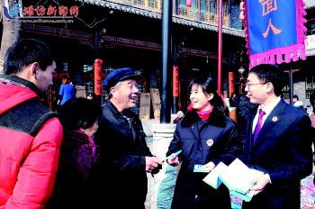 | 元宵节期间,青州市检察院组织法制宣传小分队,来到该市最为繁华的北门古街,向前来欣赏民俗表演活动的群众发放法制宣传手册,并现场解答群众的法律咨询,受到群众欢迎。