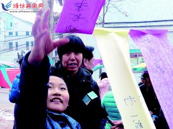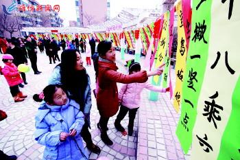 | 2月13日,奎文区大虞街道东庄社区在早春园小区活动广场组织元宵节猜灯谜活动,为社区居民们营造了温馨、欢乐、祥和的节日氛围,受到广大居民的一致好评。图为社区居民在猜谜语。 记者王乐摄