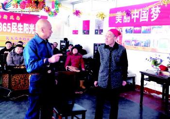 | 2月13日,潍城区西关街道高家东社区居民在表演小品。当日,社区活动室里欢声笑语,居民大联欢活动正在火热进行中,居民们轮番登台表演各自的拿手文艺节目,载歌载舞欢庆元宵佳节。 记者王晓光摄