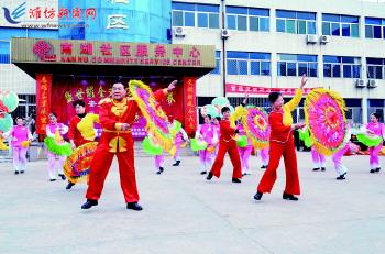 | 春节期间,奎文区举办了“我们的中国梦”文化进万家主题系列活动。2月11日,在奎文区北王茶城文化广场,来自潍州路街道的群众演员带来了丰富多彩的文艺表演节目,受到了居民的喜爱和好评。 记者王乐摄 |