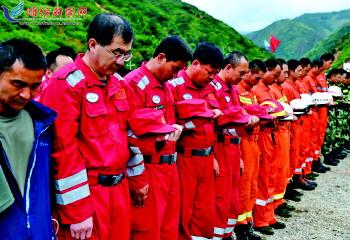据新华社云南鲁甸8月10日电 笛声呜咽,警报哀鸣。10日10时,沉痛哀悼云南鲁甸“8·03”6.5级地震遇难同胞仪式在鲁甸县城举行。同一时间,从震中龙头山到省城昆明,从梅里雪山到珠江源头,从乌蒙山区到孔雀之乡,云南各地各族群众就地默哀3分钟,深切缅怀地震遇难同胞。 鲁甸县城悼念仪式现场布置得简洁庄重,气氛肃穆,正中悬挂着黑底白字的“深切哀悼云南鲁甸‘8·03’地震遇难同胞”横幅,两旁是“逝者安息”“生者坚强”的竖幅,黑白两色的献花台十分素雅。 10时整,国家有关部委和云南省各级各部门党政军领导及各界群众代表100余人佩戴白色纸质胸花静静肃立,低头默哀,现场内外汽车喇叭声、警报声响彻县城。 3分钟后,各界代表在充满哀伤的《思念曲》中手持白色、黄色的菊花,依次缓缓走向献花台,把鲜花轻轻放在台上,深深鞠躬,官兵们献花后庄严敬礼。