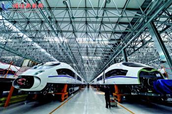 率先为动车组装载上“中国大脑”,研发出完全自主知识产权的轨道客车转向架,研制出填补国内空白的100%低地板车……从“中国制造”到“中国创造”,中国北车长春轨道客车股份有限公司正以创新实现转型,制造开往全球的列车。 图为在长客高速动车组制造中心装配车间,动车进入最后的制造工序。 (新华社发)