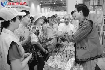 9月3日,在鲁台会展中心,来自奎文区潍州路街道健康街社区的志愿者们正在为参观者讲解有关知识和引导消费者健康合理消费,为拉动鲁台经济营造了良好的氛围,成了鸢都一道特有的风景。 记者王乐摄