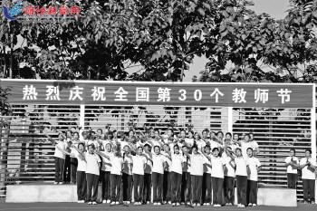 9月10日,潍坊广文中学、潍坊文华国际学校举行庆祝第30个教师节活动。伴随着全校学生为老师献唱的歌声,学生们怀着对老师们的崇高敬意,为老师们献上了教师节最好的礼物——自己亲手制作的丝袜花,并献上祝福。 赵燕燕摄