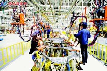 今年以来,福田汽车山东多功能汽车厂坚持高起点、大投入的运作模式,在生产管理、物流等领域实现了数字化,有效促进了信息化与工业化的深度融合,提高了生产效率和自动化水平,在国内同行业中处于领先地位。前三季度,企业实现汽车产销3.1万余台,同比增长24%,其中出口6500余台,同比增长39%,主营业务收入突破20亿元,实现利税1.4亿元。图为工作人员正在焊接车身。 记者王乐 通讯员宋一航摄