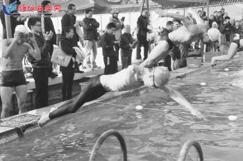 11月9日,我市第十四届冬泳锦标赛在东方游泳中心举行。来自县区9只代表队的300多名冬泳爱好者参加了比赛。近年来,我市积极倡导全民健身,群众参与体育健身运动热情高涨,参与者也越来越多。增强体质、健康生活成为人们的共识。图为我市冬泳爱好者盛先生在比赛中。 记者尚平摄