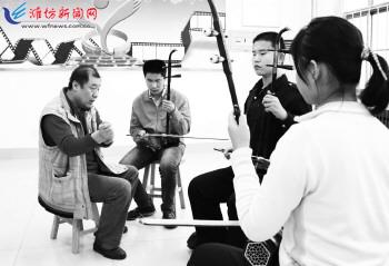 ▲近日,潍城区文化志愿者在为盲校学生提供免费二胡培训。近年来,该区积极实施“文化兴区”发展战略,深入实施文化惠民工程,注重发展特色文化产业,文化建设呈现出蓬勃发展的良好局面。 记者王晓光 通讯员隋华光摄