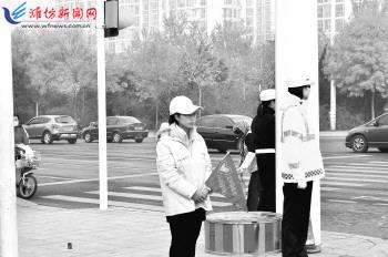 本报讯 (记者刘超)11月15日,来自潍坊学院等6所高校的88名志愿者分赴我市中心城区22个重点路口疏导交通秩序,拉开了我市“文明交通·志愿你我”主题志愿服务活动序幕。 据悉,此次志愿活动由团市委、市文明办、市交警支队及市志愿者协会共同发起,来自我市6所高校的400余名大学生志愿者参加。在11月15日至12月21日期间,周六、周日上午8时至10时和下午的2时至4时,分批到市区重要交通路口上岗,协助执勤交警疏导交通秩序,劝阻不文明交通行为。右图为志愿者在北海路胜利东街路口协助交警维持交通秩序。