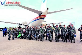 中国援助塞拉利昂第二批实验室检测队和来自解放军第302医院的第二批医疗队15日抵达弗里敦,并完成了与第一批检测队和医疗队的交接。第二批援塞抗埃人员将继续负责运作位于弗里敦市郊中塞友好医院的中国移动实验室,开展埃博拉病毒标本检测,并在中塞友好医院运作埃博拉病例留观中心。 图为11月15日,中国援塞医疗队员在塞拉利昂弗里敦机场向欢迎人群挥手致意。 (新华社发)
