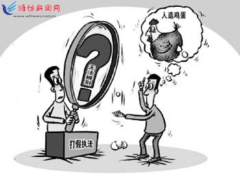 前几天,宁夏银川市民马先生买了3斤鸡蛋。煮了几个发现有点奇怪,“感觉蛋黄很有弹性,蛋黄不会散,像橡皮泥似的。”马先生怀疑这些鸡蛋中有网上说的假鸡蛋。笔者将可疑鸡蛋送至工商部门求解。打假执法人员表示:无法用肉眼辨别鸡蛋真假,鸡蛋造假工艺越来越高,真假鸡蛋从外观上看不出什么区别。 食品安全大于天。造假技术越来越高,客观上要求监管者具有更高的辨假技能,无力辨假,如何打假? 刘道伟画