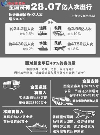 □本报记者 王政凯 2015年春运自2月4日开始至3月15日结束,历时40天。据有关部门预测,今年春运期间,全省旅客发送量将达到6967万人次,与去年同比略有上升;其中,道路交通旅客发送量为5390万人次,占总发送量的77.4%。我市也将迎来大客流、大交通流的严峻考验。春运首日,市交警支队发布春运交通安全保障措施,全力以赴迎接春运到来。