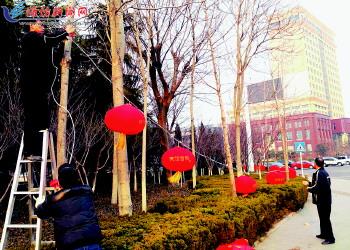 2月11日,工作人员在城区北海路与福寿东街路口悬挂大红灯笼。春节临近,奎文区在辖区内各大路口、社区、商场等地段悬挂大红灯笼3000多盏,营造出浓厚的节日喜庆氛围。