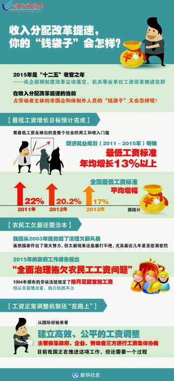 收入分配改革涉及千家万户的“钱袋子”。2015年是“十二五”收官之年——央企薪酬制度改革尘埃落定,机关事业单位工资改革推进在即。在收入分配改革提速的当前,占劳动者主体的非国企和体制外人员的“钱袋子”又会怎样呢? 最低工资增长目标预计完成 不要小看最低工资,虽然它的变动直接影响的主要是公益性岗位、低端制造业基层员工和劳动技能比较低的灵活就业人员等群体,但就像央行基准利率一样,反映出的是整个社会的用工和收入门槛。一般来讲,无论是幅度还是频率,最低工资上涨与社会整体工资上涨是相对一致的。 促进就业规划(2011-2015年)明确,最低工资标准年均增长13%以上。“这个目标预计是能顺利完成的。”全国人大代表、浙江省人力社保厅厅长吴顺江说,关键是如何按照政府工作报告中所说的“完善最低工资标准调整机制”。 据统计,2011年和2012年,全国最低工资标准平均增幅分别为22%和20.2%,2013年这个数字则为17%,截止到2014年7月25日,最低工资标准平均增幅为14.2%,均超过13%。因此,完成任务顺理成章。 全国政协委员、民建吉林省委副主委王欣认为,最低工资上涨幅度一定要超过CPI,只有这样才能让普通劳动者真正受益。 农民工欠薪还需治本 我国从2003年底掀起了清理欠薪风暴。虽然国家作出了很大努力,但欠薪现象还是屡打不绝,尤其最近几年甚至愈演愈烈。今年的政府工作报告提出,“全面治理拖欠农民工工资问题”。 全国人大代表、民革吉林省委专职副主委郭乃硕说,每到春节农民工被拖欠工资都是一个热点话题。这种现象屡打不绝的首要原因就是转包制度:一项工程项目层层转包,最后才转到包工头,一旦资金链断裂,包工头拿不到工钱,更不要说农民工了。 “另外,许多施工企业只在年终或工程完工时集中结算,平常只给工人发一定数额的生活费。”郭乃硕说,“要治本,就必须按月足额发放工资,这样即便拖欠也只是一个月的工资。” 全国人大代表、浙江《温州晚报》雪君工作室主持人郑雪君说,从工作室接到的投诉看,拖欠工资的案例大部分是由于企业主“跑路”或者企业确实困难有关。 1994年颁布的劳动法就规定了按月足额发放工资,但从目前情况看,执行仍然不力。 工资正常调整机制还“在路上” 促进就业规划(2011-2015年)明确,形成正常的工资增长机制。这个目标能否完成? 其实,国企和体制内的工资正常增长机制在很大程度上是政府说了算,目前还不能说已经建立。而其他群体的工资增长在很大程度上是市场说了算:例如很多白领在年底要和公司谈下一年的待遇,每年春节后出现“招工荒”的主要原因之一也是农民工与企业议价。 从国际经验来看,建立高效、公平的工资调整主要依靠政府、企业、劳动者三方进行工资集体协商,目前我国正在推进这项工作,但还需要一个过程。 全国人大代表、吉林省延边州人大常委会原主任金硕仁表示,从现代企业发展规律看,建立正常的工资增长机制非常有必要。国家应制定完善法律,确立工资协商的法律地位。 “三方协商的工资调整机制,必须发挥政府的主导作用,同时赋予工会在维护劳工者权益方面更多的武器,推动机制平衡发展。”金硕仁说。 (据新华社北京3月9日电)
