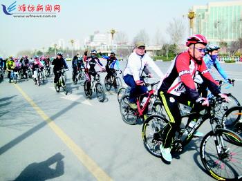 为了进一步宣传我市全民健身运动,积极倡导绿色低碳出行的生活理念,推进我市绿色骑行城市建设的开展,3月22日上午,我市首届环城骑行活动在市人民广场拉开帷幕,来自骑行俱乐部及社会各界群众600余人参加了活动。 记者王政凯摄