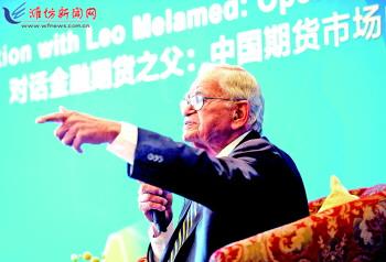 3月26日,美国芝加哥商品交易所终身主席、素有“金融期货之父”美誉的利奥·梅拉梅德在午餐会上发言。 当日,博鳌亚洲论坛2015年年会举行“对话金融期货之父:中国期货市场的开放”午餐会。美国芝加哥商品交易所终身主席利奥·梅拉梅德、《第一财经日报》副总编辑杨燕青等嘉宾就中国期货市场开放的瓶颈、建议等话题进行了对话。 (新华社发)