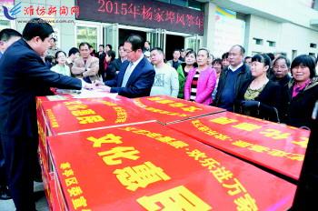 4月21日,寒亭民间文艺队负责人正在领取演出器材。当日,在2015年杨家埠风筝年画艺术系列活动之“文艺走基层·欢乐进万家”系列文化活动中,寒亭区为群众特色文艺队伍免费发放了音响、锣鼓等演出器材433套。近年来,该区以“文化惠民、文化育人、文化乐民”为目标,以独具创意的系列文化活动为载体,广泛发动群众积极参与,全面展示寒亭优秀民间民俗文化,丰富市民精神文化生活。 记者王晓光 通讯员王秀波摄