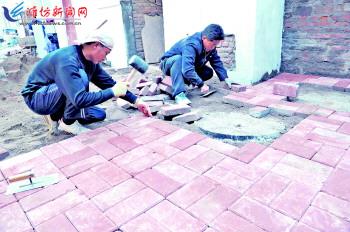 4月21日,施工人员在潍城区西关街道高家东社区铺设地面。该社区的高家东路小区提升工程正在紧张施工,工程包括路面、排水管道改造和建设自行车棚、公共卫生间等。据悉,潍城、奎文、坊子、寒亭、高新5区启动的5个老旧小区整治提升工作目前进展顺利,今年5月底全部完工后,居民的生活环境会有明显提升。 记者王晓光摄