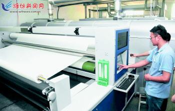 5月5日,孚日集团员工在操作数码喷墨印花机加工个性化纺织品。该集团今年一季度实现出口1.33亿美元,同比增长8.6%,实现了首季开门红。近年来,高密市十几家企业通过与40多家世界500强或行业领军企业合资合作,进入国际高端市场,带动了高密整体工业经济由中低端迈向中高端,企业进入了高质高效发展阶段。 记者王晓光 通讯员王有志摄