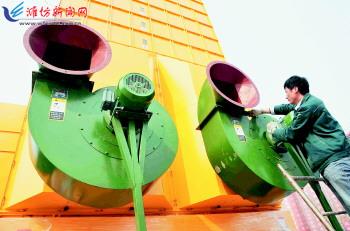 近日,山东瑞良烘干机械科技有限公司职工在组装粮食烘干机。位于青州市峱山经济发展区内的该公司是一家集研发、制造、销售、安装服务于一体的粮食烘干机械科技制造企业,生产的四大系列烘干机产品具有自主知识产权和专利,营销服务网络涵盖国内20个省市及东南亚、南亚、独联体等海内外市场。近年来,青州市积极培育战略性新兴产业,大力发展高新技术产业,加快构建现代产业新体系,在推动经济转型升级上实现新突破。 记者王晓光摄