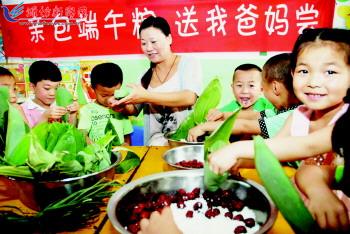 近日,青州市云门山街道一幼儿园的孩子们在老师指导下学包粽子。连日来,我市各地社区、学校等基层单位组织开展了丰富多样的“迎端午、孝亲行”尊老感恩活动,迎接端午节和父亲节。