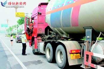 近期,临朐县公安局交警、治安部门积极行动,对辖区危化品道路运输车辆、危化品从业单位安全生产情况开展执法检查,并联合交通运输、安监、消防、保险和危化品运输、客运企业联合开展危化品道路运输突发交通事故应急处置演练,完善应急处置预案,提高协同水平。截至7月底,临朐县公安局交警大队已查处危化品运输车辆交通违法行为28起,治安大队发现安全隐患6处,共下发限期整改通知书32份。图为交警在路查。 记者刘名顺 通讯员王佩忠摄