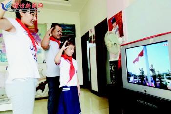 9月3日,纪念中国人民抗日战争暨世界反法西斯战争胜利70周年大会在北京举行。我市市民通过各种方式观看阅兵式盛况,共同为祖国的强大点赞喝彩。 图①:青州市刘井小学学生郄彦杰与父母一起观看阅兵式时,全家共同向国旗敬礼。 记者王晓光摄 图②:城区一家火烧店张贴告示,提前打烊,回家观看阅兵盛典。 记者曹亮华摄 图③:驻青州某部三营学员边观看阅兵式,边讨论观后感。 通讯员尤亮摄