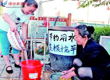 近日,高密一居民将洗过衣服的水积攒起来留作他用。为提高居民爱水护水意识,高密市开展了节水宣传活动,通过向居民发放抗旱节水倡议书等措施,培养居民一水多用的习惯,提高水资源的利用效率,助力抗旱保秋种、节水保供水。 记者王晓光 通讯员刘洋 孙万前摄