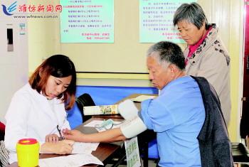 近日,奎文区东关街道李家街社区老年人接受体检。针对天气渐冷的情况,该社区联合有关部门开展“关爱老年人,健康社区行”大型义诊活动,为社区55岁以上的社区居民进行血压、血糖、血常规、心电图等项目的检查,同时给老人们送上冬季健康知识手册,并针对他们的健康问题给出合理的建议,受到居民的热烈欢迎。 记者王晓光摄