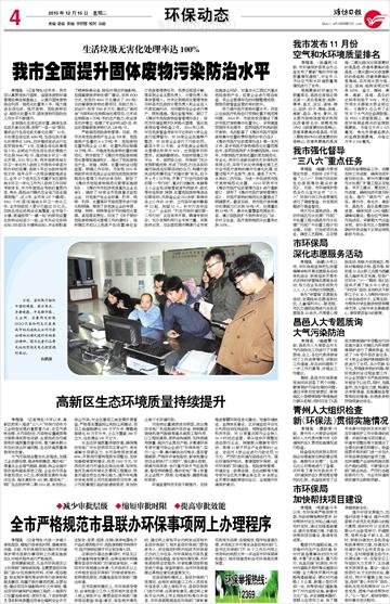 我市发布11月份空气和水环境质量排名