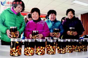 1月15日,奎文区潍州路街道健康街社区空巢老人在领腊八蒜。农历腊八节,有腌腊八蒜的传统习俗。该社区的工作人员和志愿者一起剥蒜腌制了腊八蒜,送给社区里的空巢老人,让瓣瓣腊八蒜传递出浓浓的邻里亲情。 记者王晓光 通讯员刘真真摄