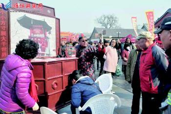 春节期间,市民纷纷走进十笏园文化街区、杨家埠民间艺术大观园等地,逛庙会、品美食、看演出、赏灯会……与家人、朋友一起,共同度过一个欢乐祥和而又民俗气息浓郁的多彩节日。图①、②为市民在十笏园新春文化庙会上观看拉洋片、皮影戏。图③为市民在杨家埠民间艺术大观园里赏民俗过大年。 记者王晓光摄