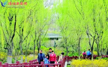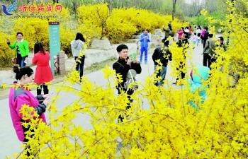 清明小长假期间,我市气温适宜,春光明媚,正是踏青赏花的好时节,城区路旁、公园、景点等处处繁花似锦,市民们纷纷走出家门,享受大好春光。图为4月2日,市民在潍坊植物园游玩。 记者王晓光摄