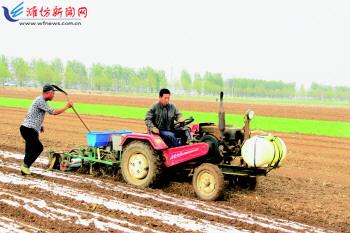 为应对旱情,峡山区大力推广高效节水技术,引导农民调整种植结构,扩大地膜作物种植面积,大力发展适应性农业,并组织技术人员深入田间地头指导抗旱工作,扎实推进抗旱保产工作。图为近日峡山区太保庄街道东下坡村农民正在播种花生。 通讯员刘涛摄