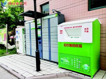 | 隆基花园小区门口的旧衣物回收箱。记者刘文研摄 |