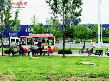 | 凤凰大街北侧小区前的流动小吃车正在路边售卖。 |