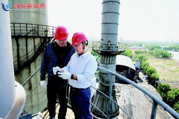 今年以来,我市坚持以实施“十大环保工程”为总抓手,以刚性减排、铁腕治污、高压监管为主线,严格按照中央和省大气污染防治规划要求,通过制定年度目标、明确任务措施、细化进度安排,强力推进各项防治措施实施,大气环境质量继续实现稳步改善,第一季度“蓝天白云,繁星闪烁”天数61天,同比改善15天,改善幅度列全省第一。图为市环保局工作人员在经济区柏利化学有限公司脱硫塔检测二氧化硫等烟气排放指标。 通讯员孙鹏摄