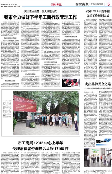 市工商局12315中心上半年受理消费者咨询投诉举报17168件