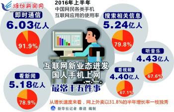 据新华社北京8月3日电 (记者高亢 朱基钗)中国互联网络信息中心3日发布的《中国互联网络发展状况统计报告》显示,截至2016年6月,我国网民规模首超7亿人,互联网普及率达到51.7%,超过全球平均水平3.1个百分点,网民规模连续9年位居全球首位。 据中国互联网络信息中心互联网发展研究部副主任刘鑫介绍,随着移动通讯网络环境的不断改善以及智能手机的进一步普及,移动互联网应用向网民生活深入渗透,促进手机上网使用率增长。我国手机网民规模达6.56亿人,网民中使用手机上网人群占比由2015年底90.1%提升至92.5%。互联网金融类应用在2016年保持增长态势,网上支付、互联网理财用户规模增长率分别为9.3%和12.3%。电子商务应用的快速发展、线上支付厂商不断拓展和丰富线下消费支付场景,促进用户转化;互联网理财用户规模不断扩大,理财产品日益增多、产品用户体验的持续提升,带动大众线上理财的习惯逐步养成。