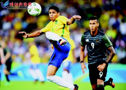 当日,在2016年里约奥运会男足决赛中,巴西队与德国队在120分钟比赛时间内以1比1战平,经过点球大战,巴西队以5比4胜出,夺得冠军。 (新华社发)