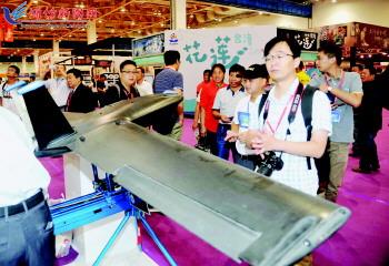 9月1日,观众在观看来自台湾的无人机。当日,第22届鲁台会海峡两岸博览会在鲁台会展中心开幕,吸引了各方宾客前来参展、洽谈、合作。