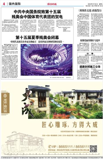 中共中央国务院致第十五届残奥会中国体育代表团的贺电